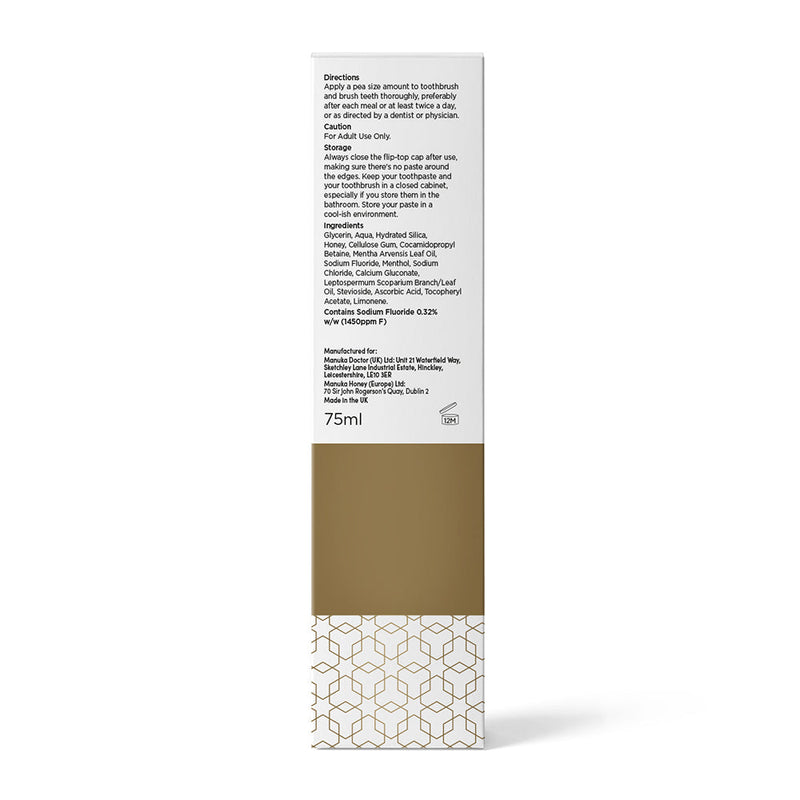 Hoewel het idee om honing te consumeren voor een goede mondgezondheid tegenintuïtief kan lijken, maken de krachtige antibacteriële effecten van manukahoning het, in tegenstelling tot snoep en andere geraffineerde suikers, onwaarschijnlijk dat het bijdraagt aan gaatjes of tandbederf." Apotheker Gemma Fromage